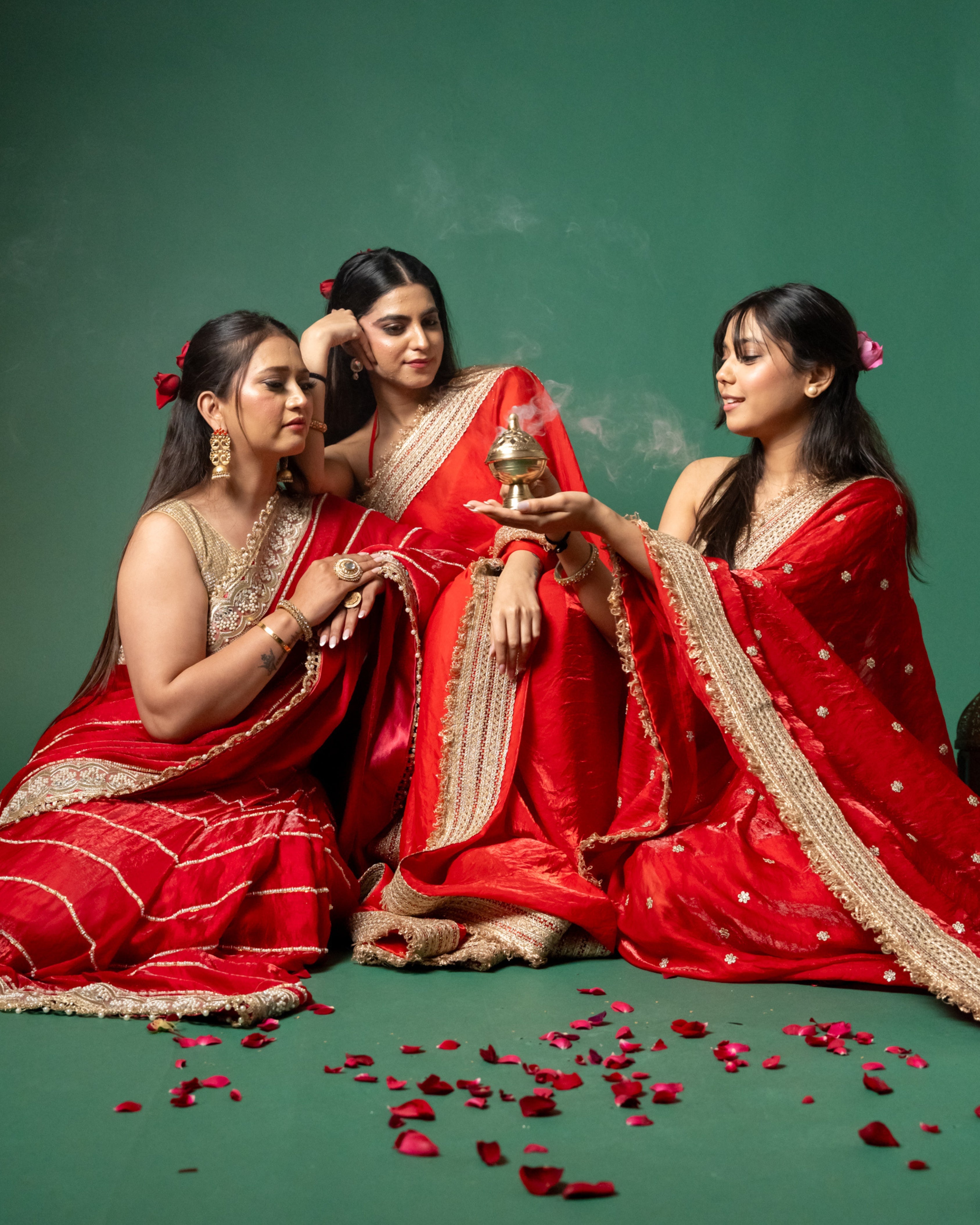 Crimson Charm Handcrafted Red Saree with Zari & Sequin Border